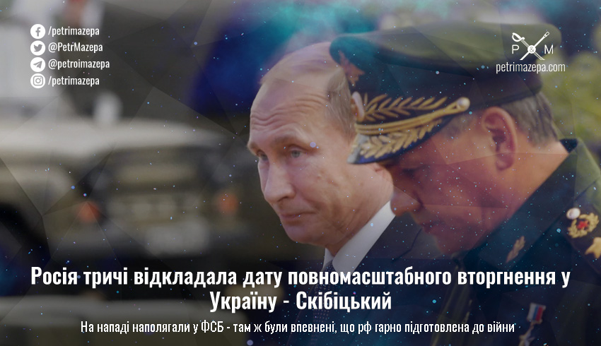 Росія тричі відкладала дату повномасштабного вторгнення у Україну - Скібіцький
