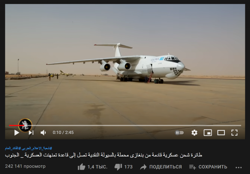 Саме в цьому розслідуванні засвітилося відео, відзняте повстанцями Халіфи Хафтара 29 січня 2019 року, на якому зображується розвантаження літака Іл-76, який прибув з вантажем готівкових грошей до лівійського аеропорту Таманхінт з Бенгазі.