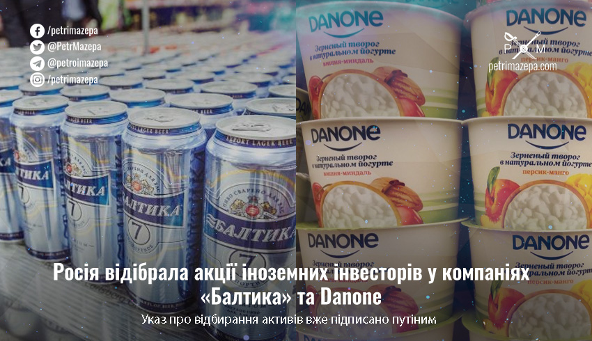 Диктатор росії путін підписав указ, яким росія фактично відбирає в іноземних акціонерів частки в компаніях «Балтика» та Danone. Попри формулювання про «тимчасове управління», фактично долі данської Carlsberg та французької Danone націоналізуються.