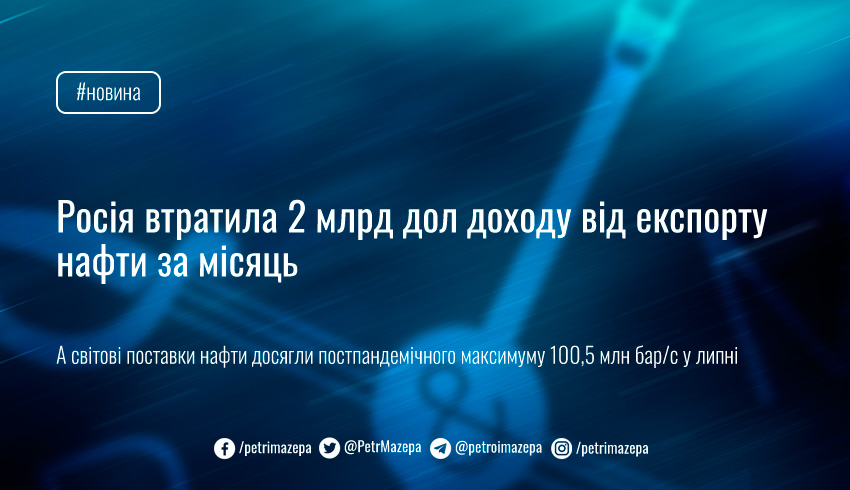 Доходи від експорту російської нафти впали з 21 млрд дол у червні до 19 млрд дол. у липні через скорочення обсягів експорту та зниження цін на нафту. За прогнозами Міжнародного енергетичного агентства, до кінця року світові постачання нафти зростуть ще на 1 млн бар/д.