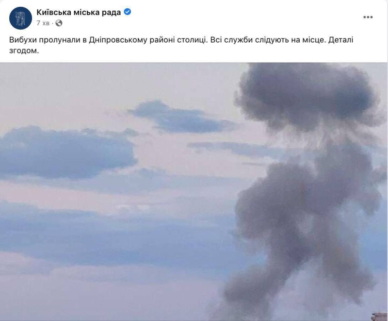 Але о 10:07 міський голова Києва повідомив про вибух в столиці.