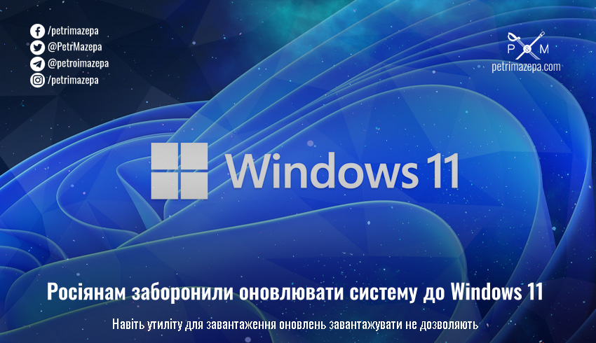 Корпорація Microsoft заборонила росіянам оновлювати систему до Windows 11 — тепер на офіційному сайті не дозволяється навіть завантажувати утиліту для оновлення системи.