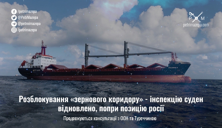 Розблокування «зернового коридору» - інспекцію суден відновлено, попри позицію росії