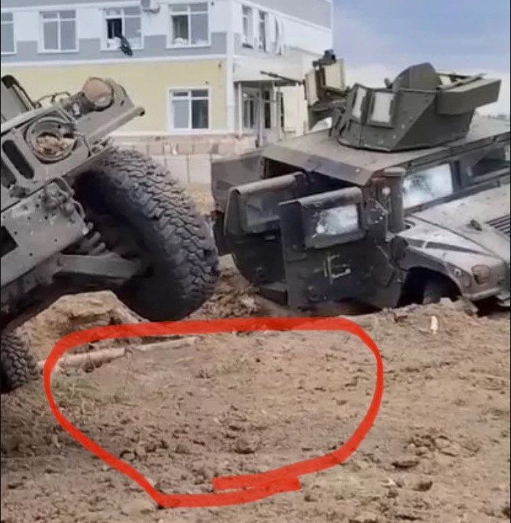 На думку FluteMagician, ці HMMWV привезли на бортовій вантажівці, після чого краном поставили у траншею. Й почали вибирати більш драматичні пози, штовхаючи авто в бік. Він припускає, що це може бути техніка, захоплена в Україні кілька місяців тому, або отримана від Ірану чи інших союзників росії.