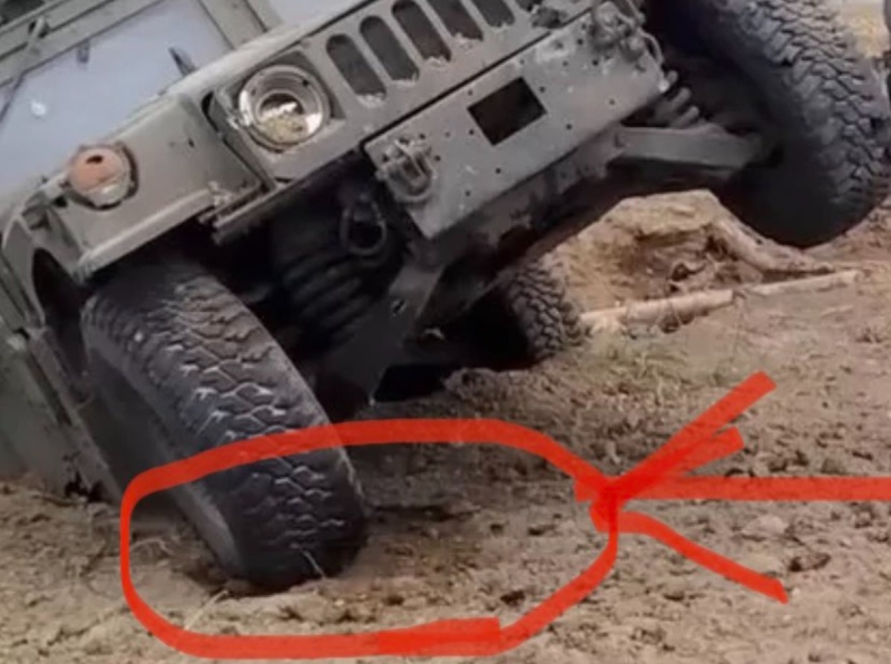 На наступному стоп-кадрі автор звертає увагу на те, що Humvee нібито врізався в стіну траншеї передньою частиною, але ґрунт не проштовхнув перед собою. Хоча при своїй вазі повинен був це зробити.