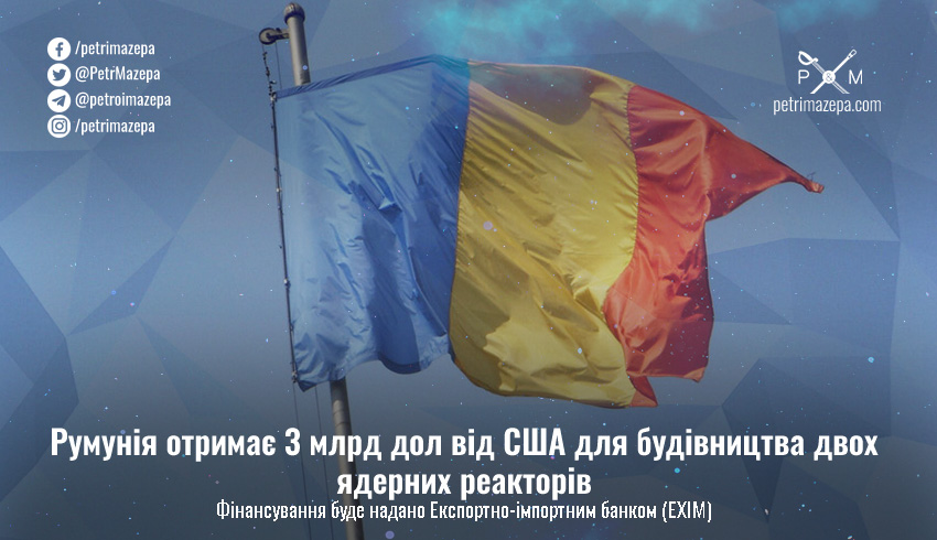 Сполучені Штати нададуть Румунії фінансування на суму понад 3 мільярди доларів для будівництва двох нових ядерних реакторів, що, як очікується, розпочнеться на початку наступного року.