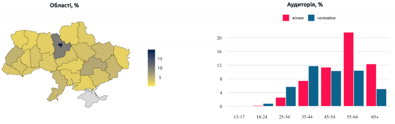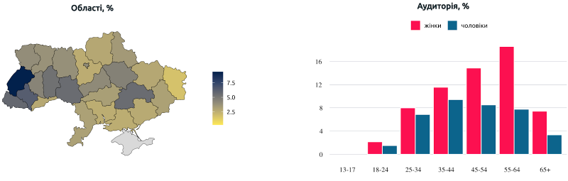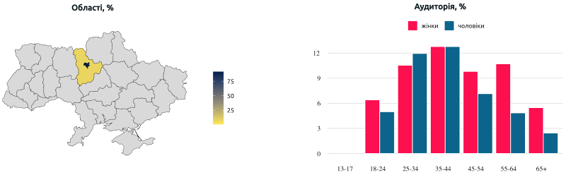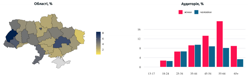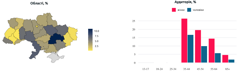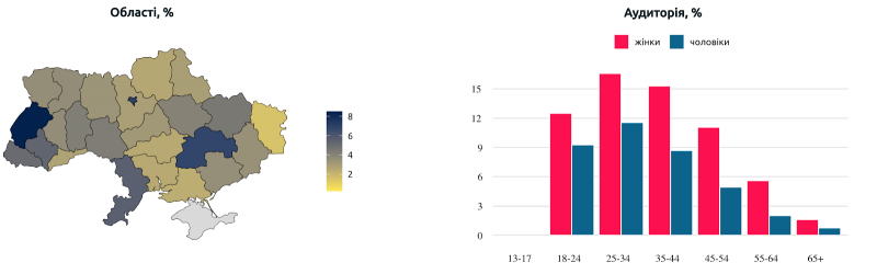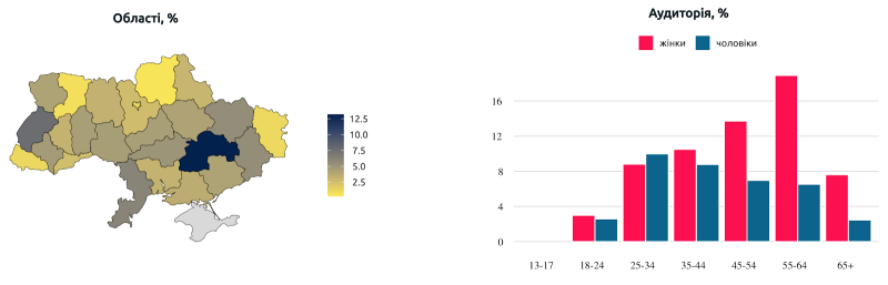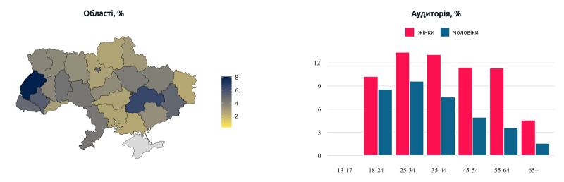 Якщо на початку року найбільше політичної реклами таргетувалося на користувачів з Києва, то далі ця тенденція змінилася. Кияни (11,5%) залишилися серед найбажаніших отримувачів рекламного контенту, але поступилися першістю жителям Дніпропетровщини (16,7%). Окрім того, рекламодавці при визначенні географічних налаштувань показів політичної реклами віддавали перевагу мешканцям Львівської (8,7%), Вінницької (5,3%), Полтавської (5,2%), Тернопільської (5%) областей. Вже традиційно найменше реклами в розрізі регіонів України було таргетовано на перегляди користувачами з Луганської області (0,7%).