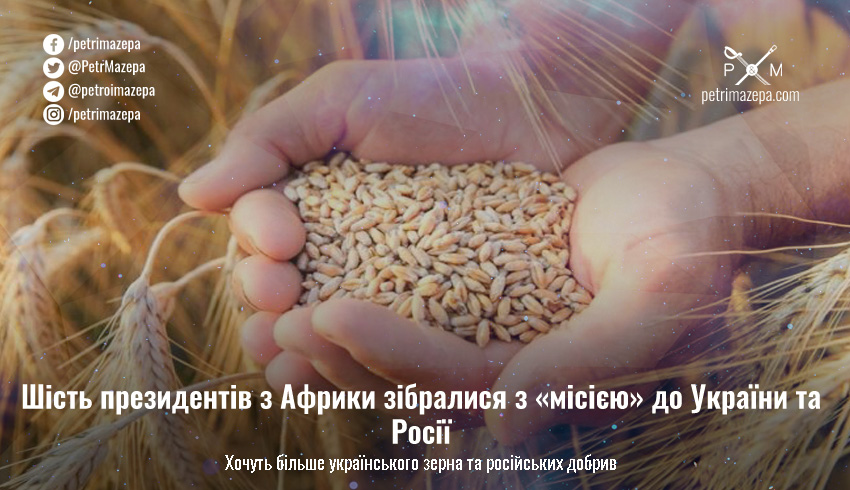 У червні 2023 року Україну та Росію планує відвідати делегація з шести африканських президентів. Вони хочуть наростити експорт зерна з України та домовитися про експорт добрив із Росії. Йдеться про президентів Південної Африки, Сенегалу, Єгипту, Республіки Конго, Уганди та Замбії.