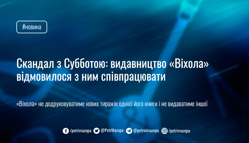 Скандал з Субботою: видавництво «Віхола» відмовилося з ним співпрацювати