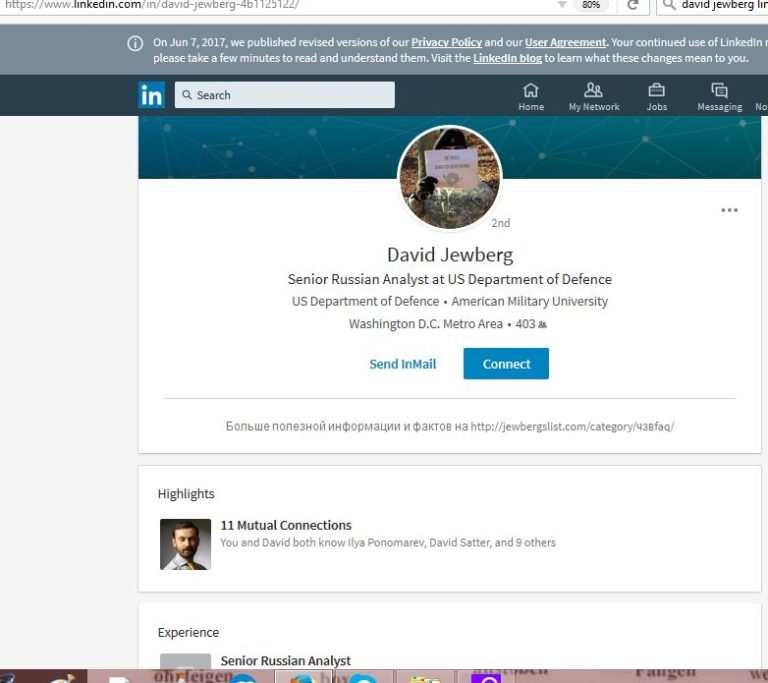 Наприклад, «Старший аналітик Пентагону Девід Джуберг» вів популярну сторінку у Facebook і часто цитувався в українських і російських ЗМІ як інсайдер Пентагону за темами, що стосуються України та Росії. Він позиціонував себе як реальну людину. Низка відомих російських опозиціонерів часто цитували «Джуберга» як шанованого аналітика.