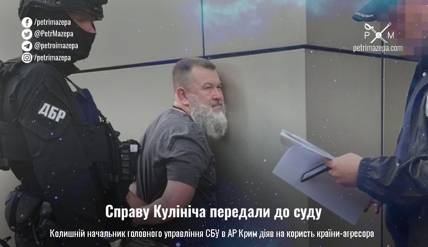 Як зазначає СБУ, до суду передали обвинувальний акт щодо державної зради та інших злочинів колишнього очільника Головного управління СБУ в АР Крим Олега Кулініча, який, за версією слідства, діяв на користь країни-агресора. Його обвинувачують за такими статтями КК України: