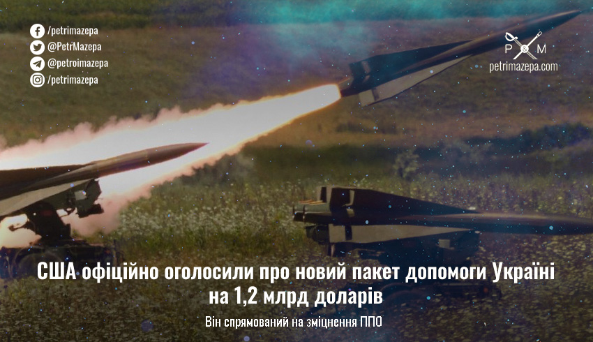 Міністерство оборони США оголосило про надання нового пакету допомоги Україні на 1,2 млрд доларів. Він надається в рамках Ініціативи сприяння безпеці в Україні (USAI) — тобто замовлень виготовлення нової техніки та боєприпасів у виробників.