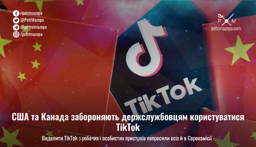 У США та Канаді держслужбовцям наказали видалити TikTok з ґаджетів. Таку ж заборону вже запровадили й у Єврокомісії.