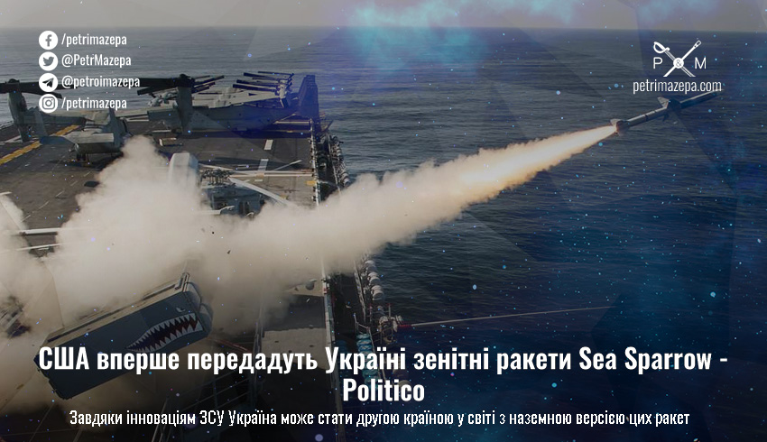 Новий пакет військової допомоги США вперше буде включати зенітні ракети RIM-7 Sea Sparrow із радіолокаційною головкою самонаведення. Про це повідомляє Politico із посиланням на заяви двох поінформованих чиновників.
