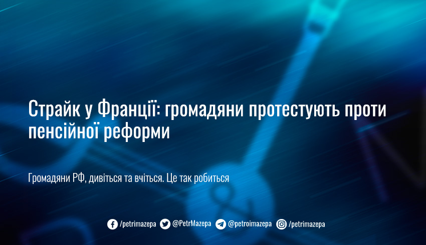 У Франції стартував загальнонаціональний страйк. Протестуючі виступають проти пенсійної реформи, у якій заклали підвищення пенсійного (відповідно) віку.