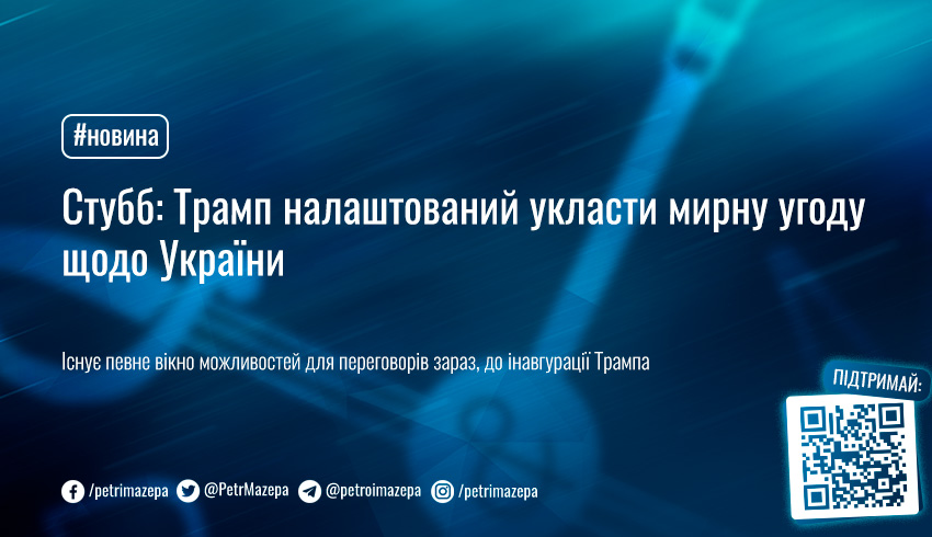 Стубб також повідомив, що Трамп серйозно налаштований укласти мирну угоду якнайшвидше.