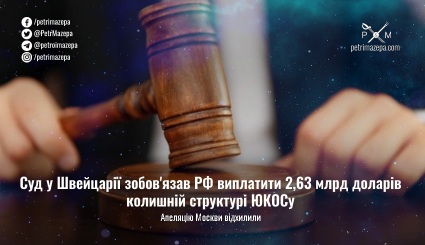 Суд у Швейцарії зобов'язав РФ виплатити 2,63 млрд доларів колишній структурі ЮКОСу