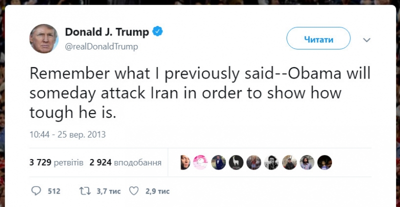 Політика — це заплутана гра, де немає місця чесності. Трамп, який сьогодні каже, що у США найкраща в світі армія і що все під контролем, ще у 2011-2013 роках звинувачував Обаму, який, на його думку, влаштував загострення на Близькому Сході для свого переобрання на другий термін.
