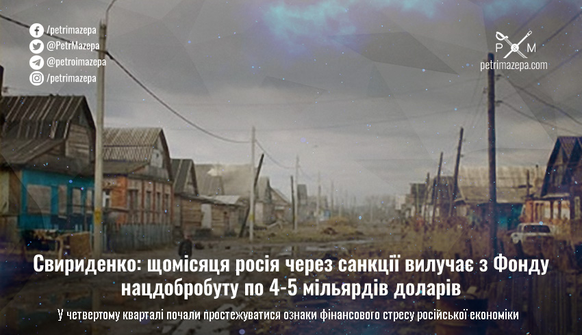 Починаючи з жовтня росія почала значні вилучення з Фонду національного добробуту для поповнення бюджету — на рівні 4-5 млрд доларів щомісячно, повідомляє Мінекономіки України.