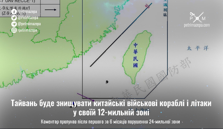 Тайвань буде знищувати китайські військові кораблі і літаки у своїй 12-мильній зоні