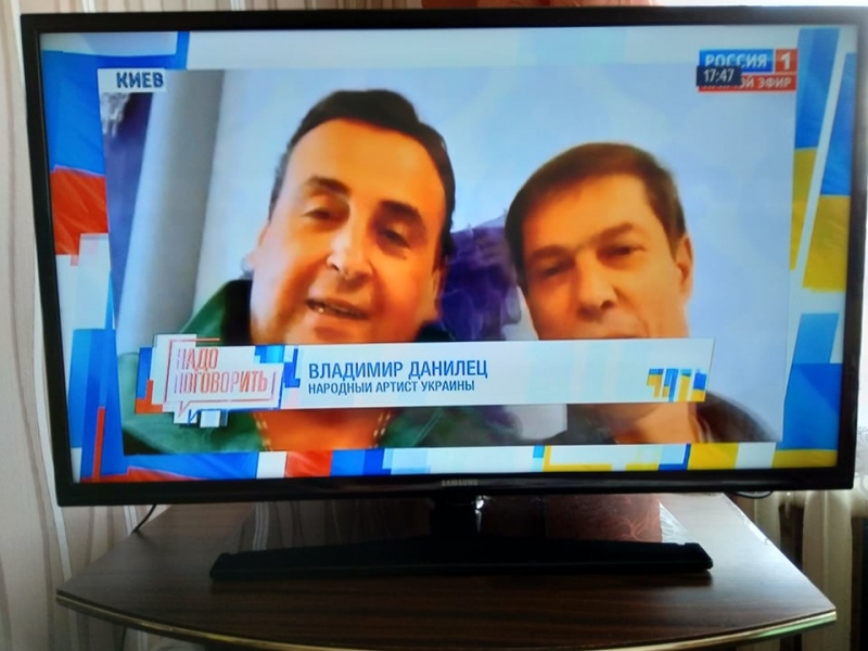 Включення з Києва акторів Володимира Данильця та Володимира Мойсеєнка скайпом було коротким, але за цей час вони встигли сказати, перебиваючи одне одного, що «давно треба було провести такий телеміст».
