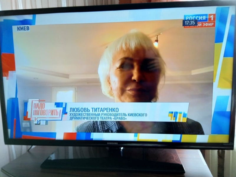 Любов Титоренко, художня керівниця київського театру «Браво», приєдналася до ефіру по скайпу й одразу ж шокувала заявою, яку не озвучували навіть відверті українофоби в московській студії. Спершу Титоренко повторювала, що «зі сльозами дивиться ефір», а потім раптом заявила: «В Україні йде громадянська війна, я не боюся цього сказати». І сказала, що перший телеміст вона запропонувала би провести з Донбасом, де «голодують люди».
