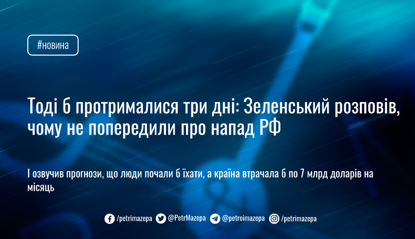 Тоді б протрималися три дні: Зеленський розповів, чому не попередили про напад РФ