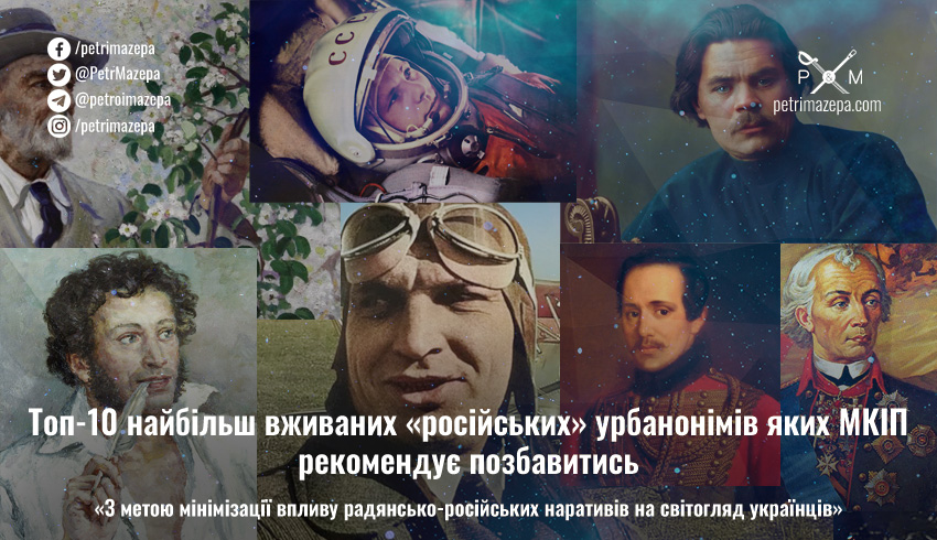 Топ-10 найбільш вживаних «російських» урбанонімів яких МКІП рекомендує позбавитись