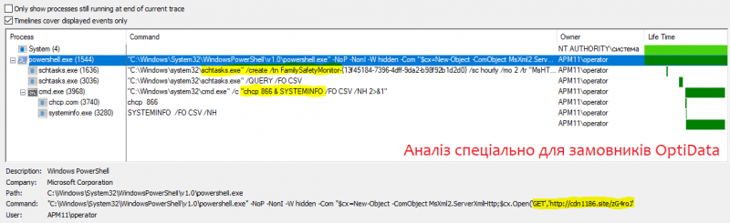 Усі операції були виконані через штатний процес PowerShell та утиліти schtasks і systeminfo, які апріорі знаходяться в «білому списку», мають дійсні цифрові підписи Microsoft та у більшості компаній не блокуються захисними рішеннями.