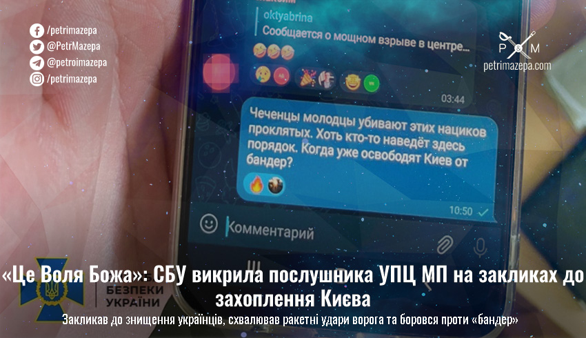 «Це Воля Божа»: СБУ викрила послушника УПЦ МП на закликах до захоплення Києва