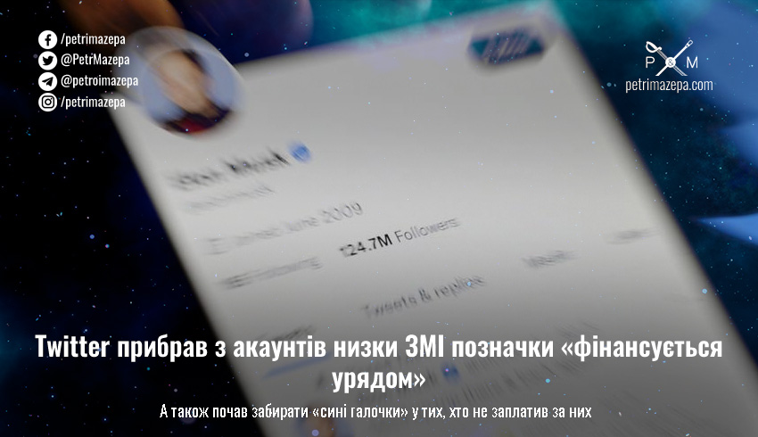 Twitter прибрав з акаунтів низки ЗМІ позначки «фінансується урядом»