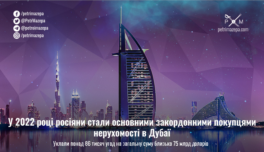 У 2022 році росіяни стали основними закордонними покупцями нерухомості в Дубаї. Російські громадяни уклали понад 86 тисяч угод із дубайською нерухомістю на загальну суму близько 75 мільярдів доларів.
