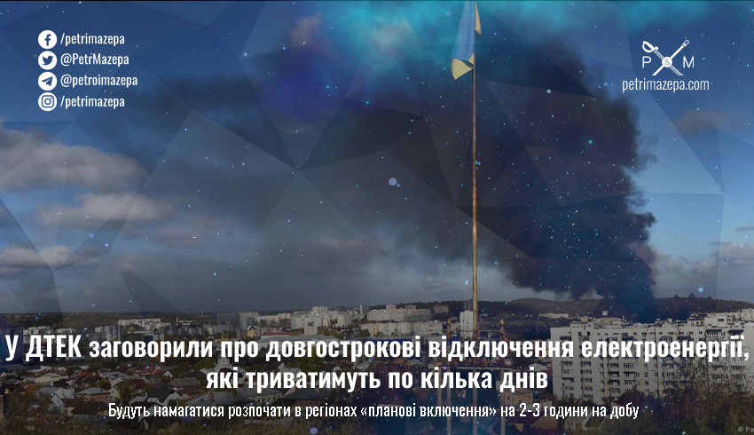 У ДТЕК заговорили про довгострокові відключення електроенергії, які триватимуть по кілька днів