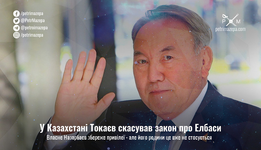 Президент Казахстана Касим-Жомарт Токаєв підписав законопроект про визнання таким, що втратив чинність, закону «Про Першого президента республіки Казахстан — Єлбаси».