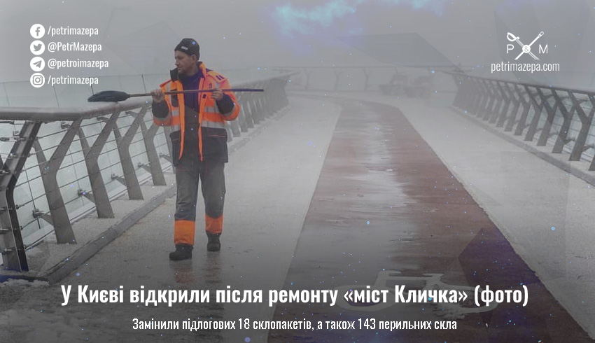 У Києві відкрито після ремонту та оновлень пішохідно-велосипедний міст, відомий як «міст Кличка». Нагадаємо, міст було пошкоджено внаслідок ракетної атаки росіян 10 жовтня.