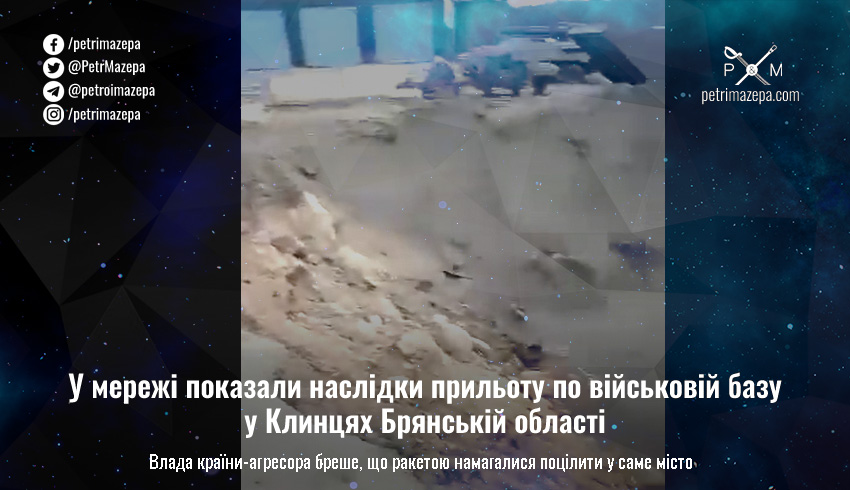 У мережі показали наслідки прильоту по військовій базу у Клинцях Брянській області