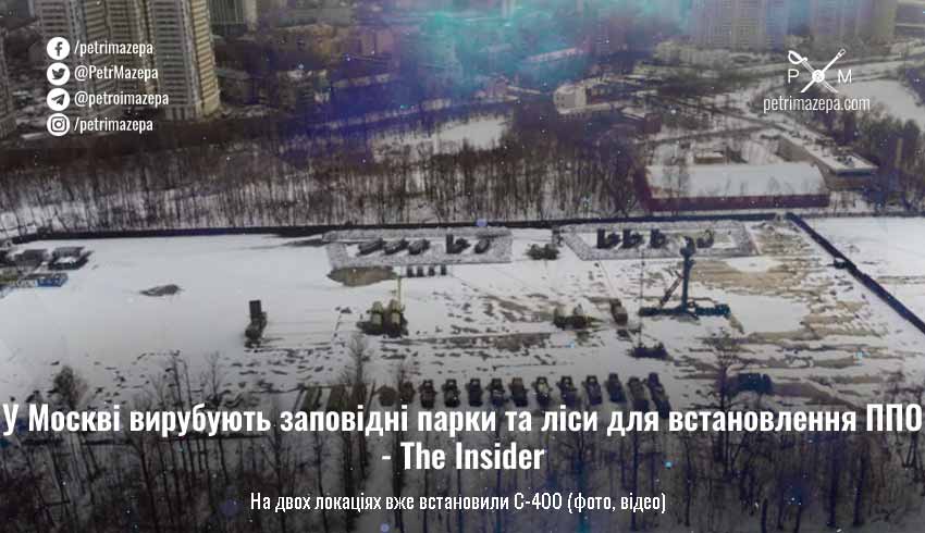За даними The Insider, на Лосиному острові та на дослідних полях Тимірязєвської сільгоспакадемії вже розгорнули ЗРК С-400. На останній локації (відео нижче), журналісти також помітили багатофункціональну РЛС 92Н6Е та всевисотну РЛС 96Л6Е. Між двома вежами — цистерни з паливом. Від цієї ділянки до найближчих багатоповерхівок — 200 метрів.