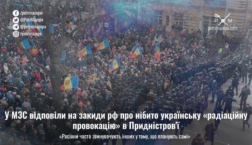 Сьогодні, 1 березня, речниця МЗС рф Марія Захарова заявила, про підготовку «київським режимом провокації» з витоками радіоактивних речовин поруч із сепаратистським анклавом Молдови Придністров'ям. Молдова вже назвала це брехнею та спекуляціями. А згодом відповіли й у МЗС України.