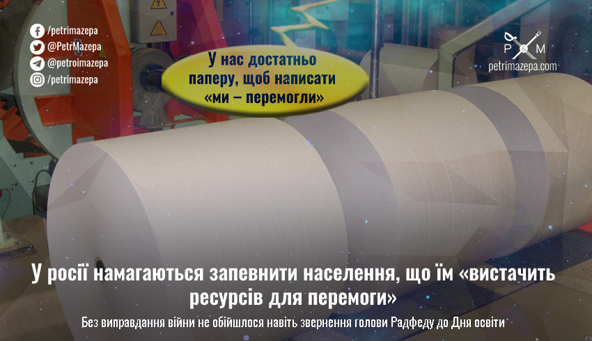 У росії голова Радфеду Валентина Матвієнко випустила звернення до Дня освіти – й навіть у ньому вже намагаються запевнити росіян, що «все йде за планом», росії «вистачить ресурсів для перемоги», повторюються класичні тезиси пропаганди, без яких у росії вже нічого обійтися не може.