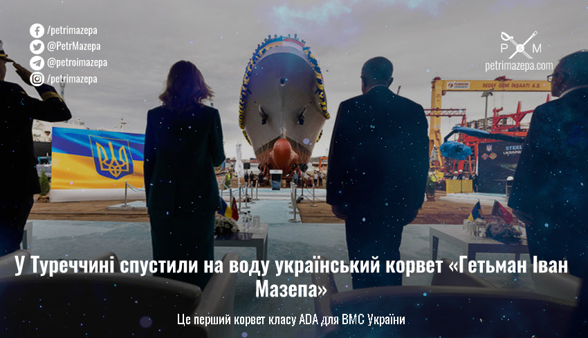 «Сьогодні у Туреччині мала честь спустити на воду корвет, який служитиме Україні й водночас матиме турецьке серце. Протичовновий корвет типу Ada "Гетьман Іван Мазепа" (це ім’я обрав для нього президент України ще у 2021 році, коли розпочиналось будівництво), буде першим кораблем такого класу для Військово-Морських сил України», — йдеться у повідомленні на Facebook-сторінці Олени Зеленської.