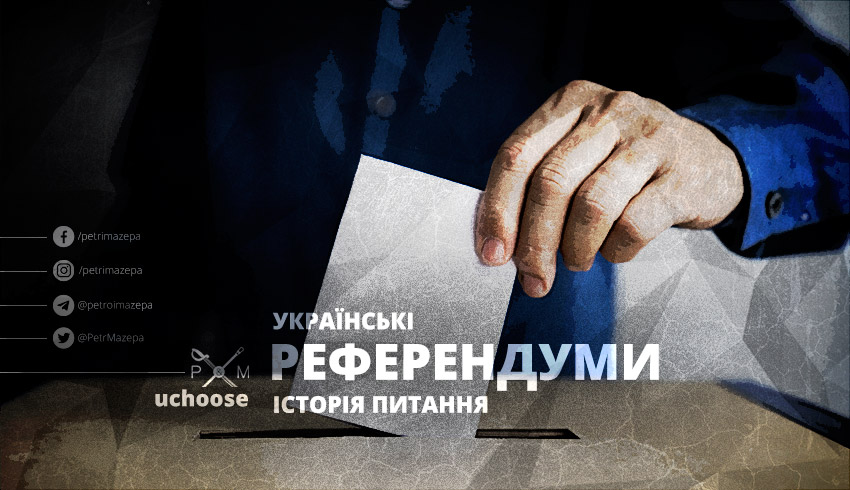 Референдуми у новітній історії України відігравали важливу роль. Навіть наша незалежність здобула формальне закріплення саме завдяки референдуму, а потім, протягом майже 30 років, цей інструмент залучали ще кілька разів: раз на загальнонаціональному рівні, і кілька разів — на регіональному. На місцевих виборах Зеленський вирішив зробити імітацію референдуму, а у Верховній Раді зараз розглядається його ж законопроєкт про цей інструмент прямої демократії. Тому варто, мабуть, згадати всю історію українських референдумів.