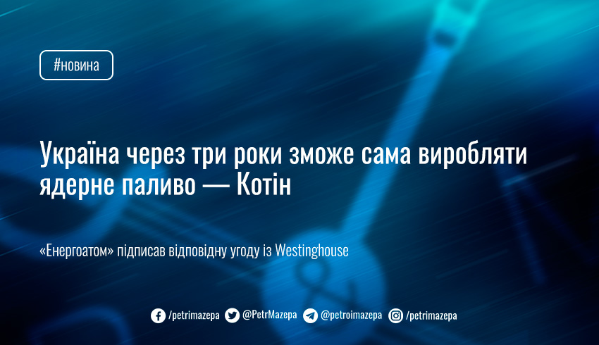 Президент «Енергоатому» Петро Котін заявив, що через три роки, тобто орієнтовно 2026 року, Україна зможе сама виробляти ядерне паливо для атомних електростанцій.
