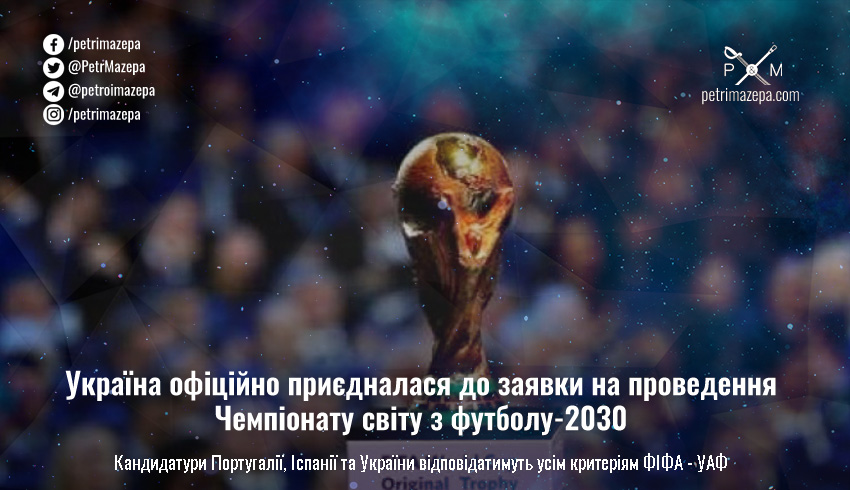Федерація футболу Португалії та Іспанії залучили Україну до своєї заявки на проведення Чемпіонату світу-2030.