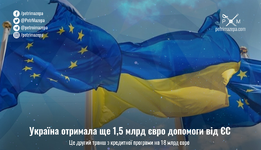 Україна отримала ще 1,5 млрд євро допомоги від ЄС