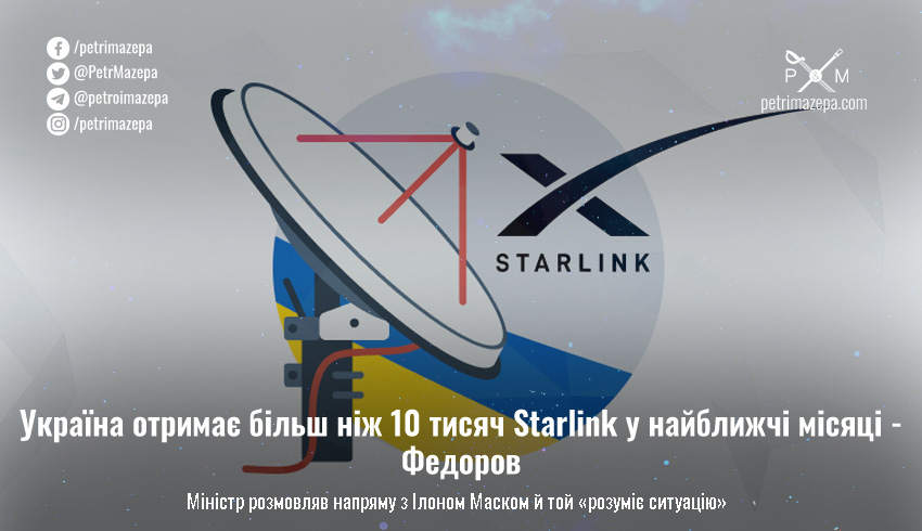 Україна отримає більш ніж 10 тисяч Starlink у найближчі місяці - Федоров