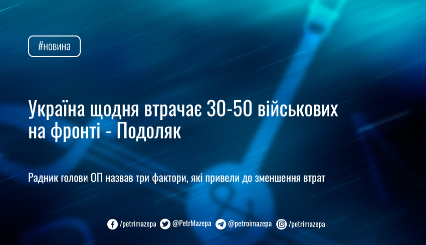 Україна щодня втрачає 30-50 військових на фронті - Подоляк