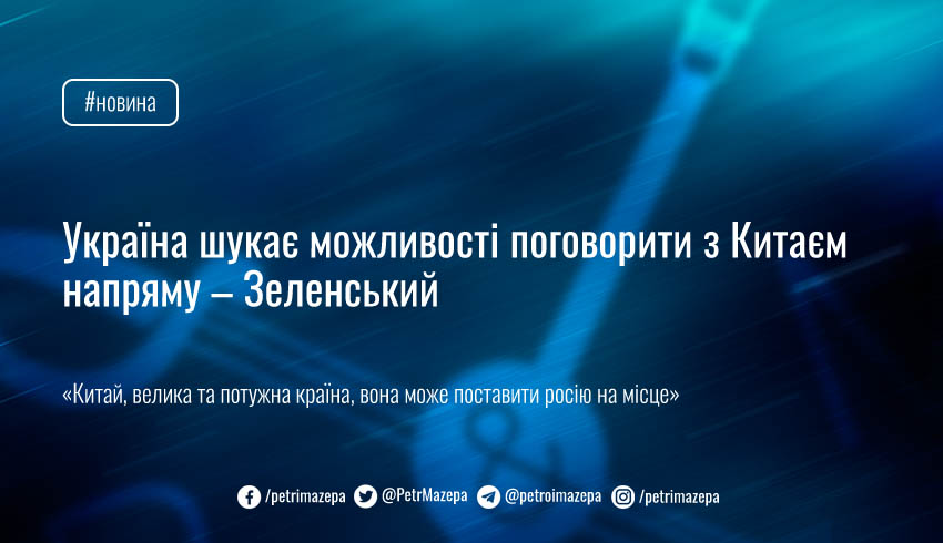 Україна шукає можливості поговорити з Китаєм напряму – Зеленський