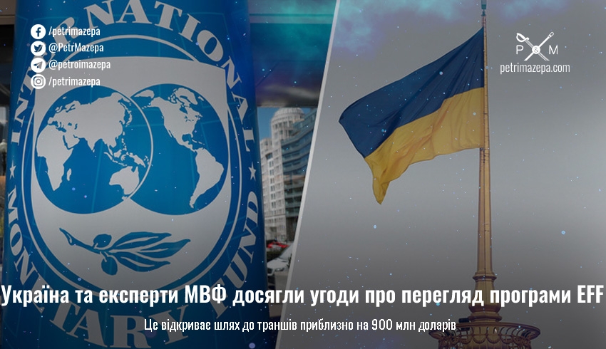 Представники влади України та експерти Міжнародного валютного фонду (МВФ) досягли Угоди на рівні персоналу щодо оновленого пакета заходів економічної та фінансової політики для першого перегляду чотирирічної програми в рамках EFF. Ці домовленості підлягають затвердженню Радою виконавчих директорів МВФ.