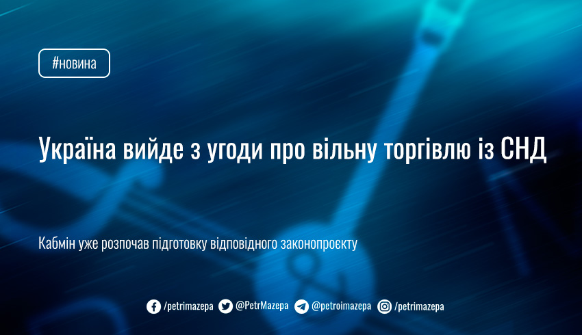 Кабінет міністрів розпочав підготовку законопроєкту про денонсацію договору про вільну торгівлю зі Співдружністю незалежних держав від 18 жовтня 2011 року.